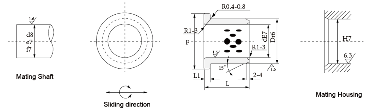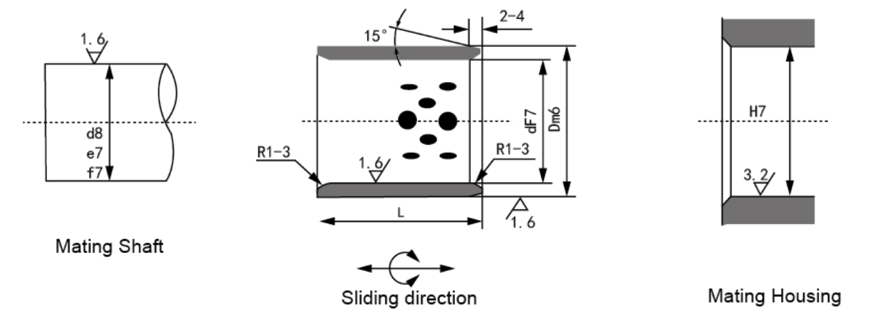 | JDB-3 | Het materiaal aan de binnenkant van producten uit de JDB-3-serie is hetzelfde als dat van de JDB-2-serie. zodat ze net zo goed konden functioneren als die van de JDB-2-serie. bijkomend. Ze hebben andere voordelen, zoals het besparen van materiaalkosten, het verbeteren van de druksterkte, en dat ze kunnen worden geassembleerd door het doorvoeroppervlak aan elkaar te lassen met een andere matrix. Ze zijn geschikt voor onderdelen die geen oliesmering nodig hebben van bouwmachines, metallurgiemachines en transportmachines. |